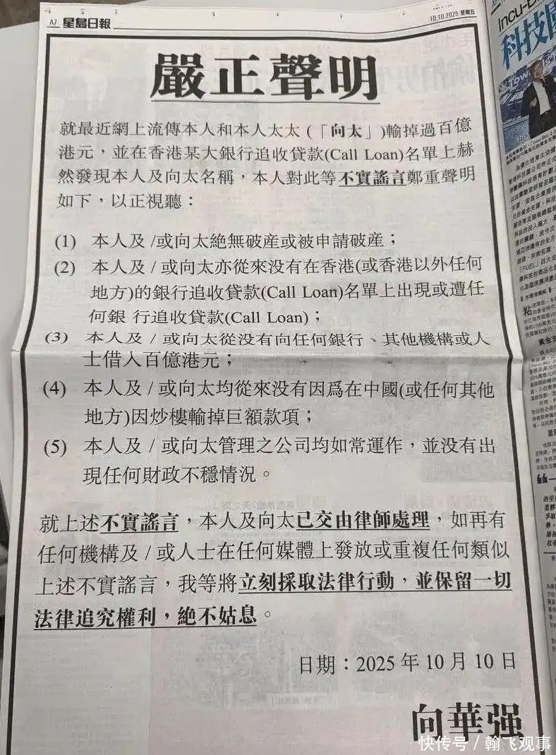 坊间甚至有传言称,向家自2025年9月起陷入财务危机,面临破产风波。