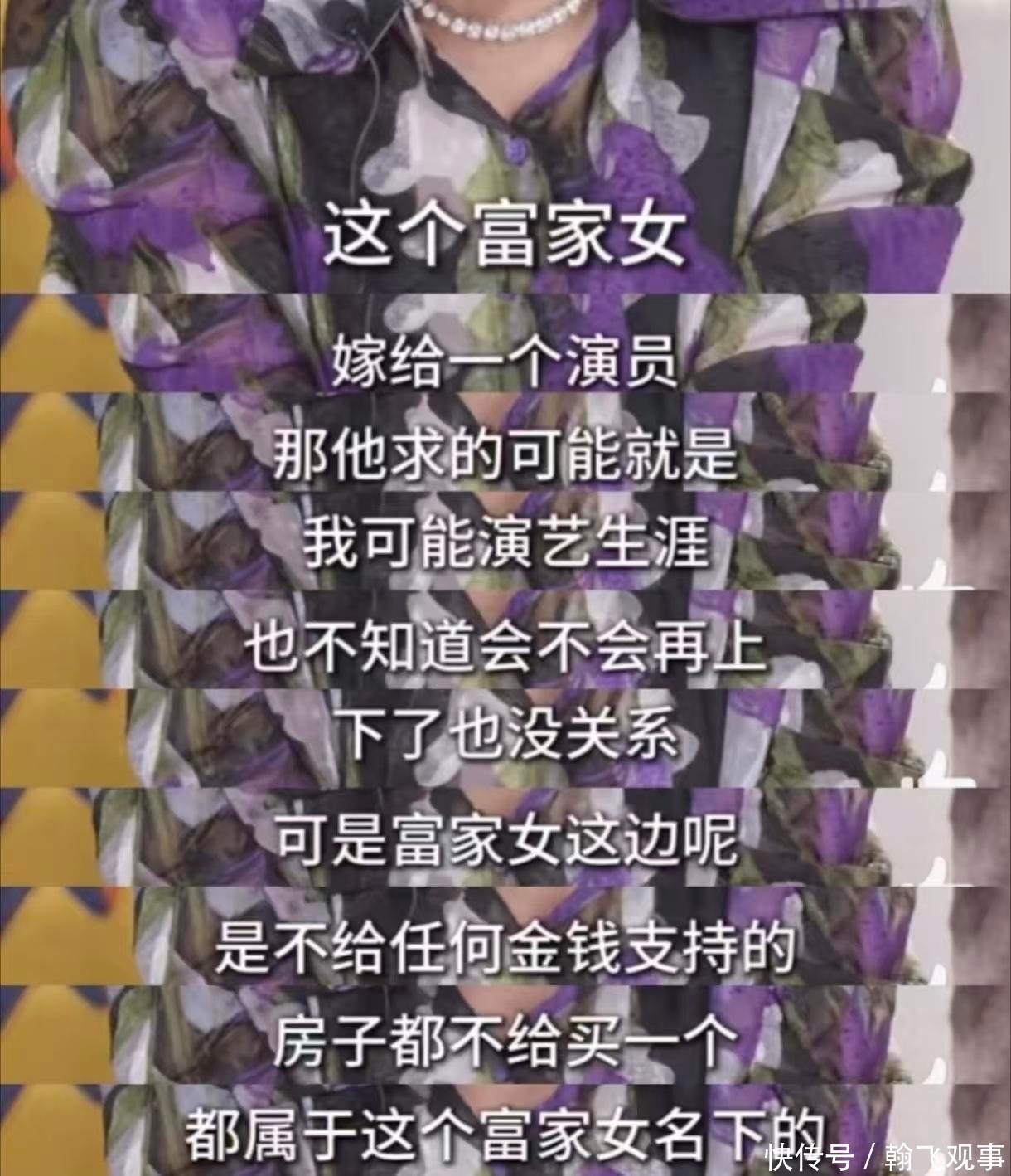 她在视频中提到:某位富家千金嫁给了一位内地男演员,但这段婚姻从一开始就未获得女方家族的认可。