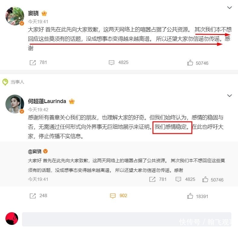 直到10月底,才联合发布一条仅有六个字的声明:“我们感情稳定”。