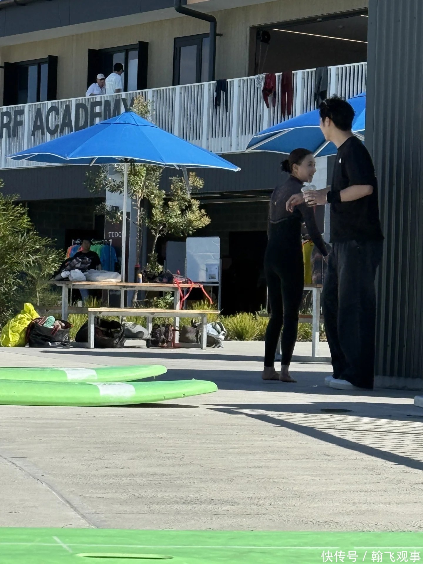 现场照片显示,两人身穿轻便运动装束,何超莲一袭黑色贴身冲浪服出镜,笑容灿烂,神采飞扬;而窦骁则安静地站在她身旁,目光始终温柔落在妻子身上,神情专注且充满爱意。
